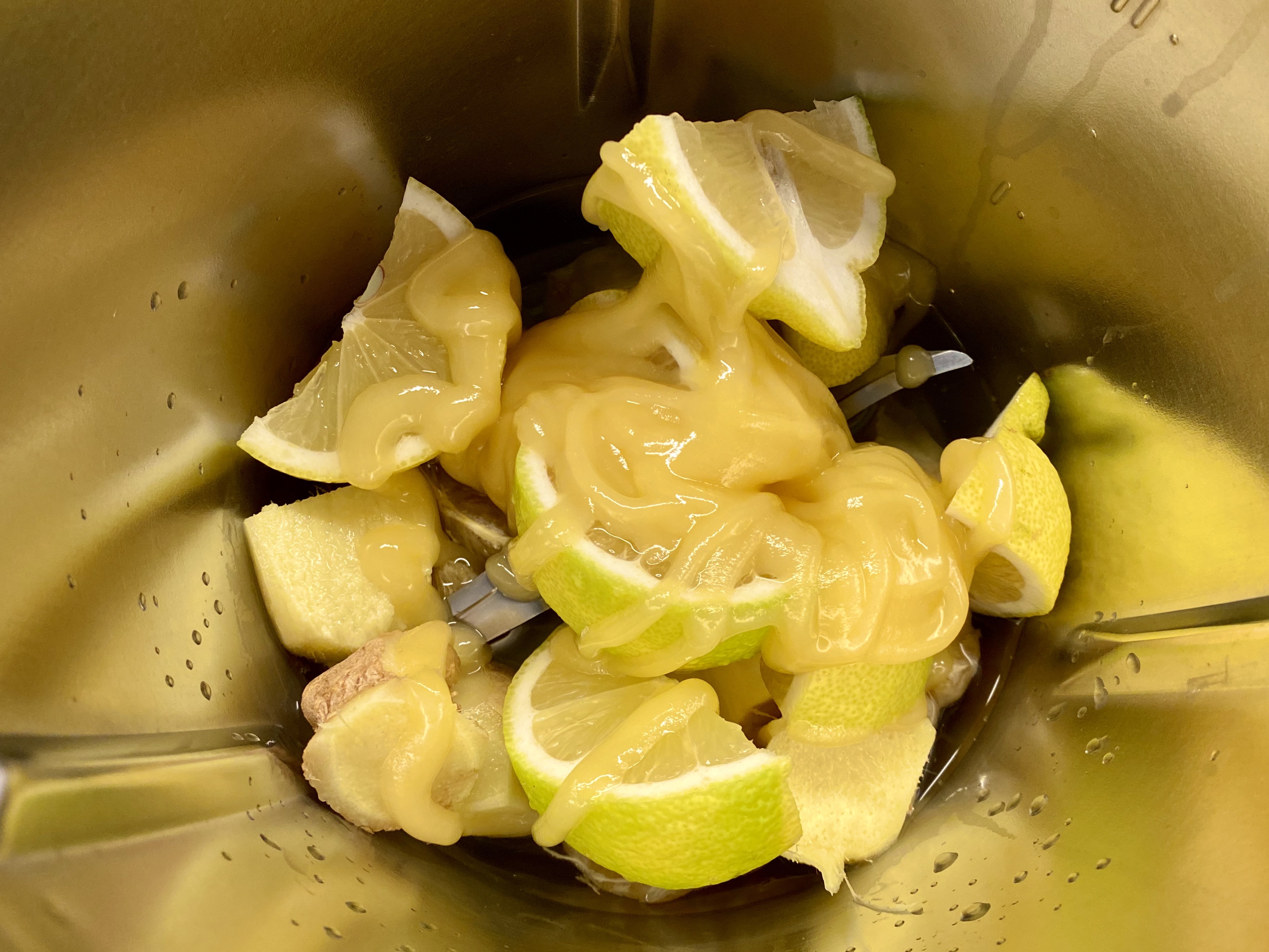 Es ist ein Shot mit Ingwer, Zitronen, Mandarine, Kren/Meerrettich und Honig. Shot, weil ihr bitte nicht gleich alles austrinken sollt, sondern nur Stamperlweise 😉 Die Inhaltsstoffe bzw. positiven Eigenschaften von Zitrone, Zitrusfrüchten und Honig sind größtenteils bekannt, daher hier nur kurz für euch etwas zu Ingwer und Kren: