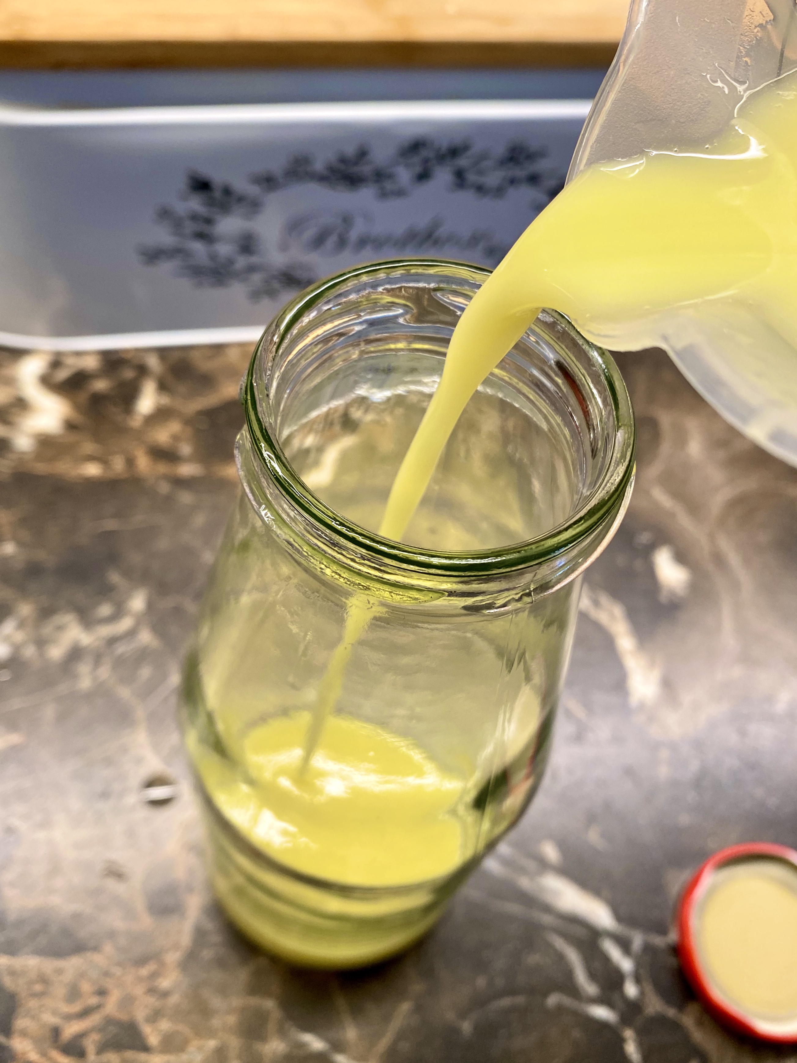 Diesen dann durch ein sehr feinmaschiges Sieb oder Nussmilchbeutel gießen, ausdrücken und in einer Flasche oder anderem verschließbaren Gefäß im Kühlschrank aufbewahren.